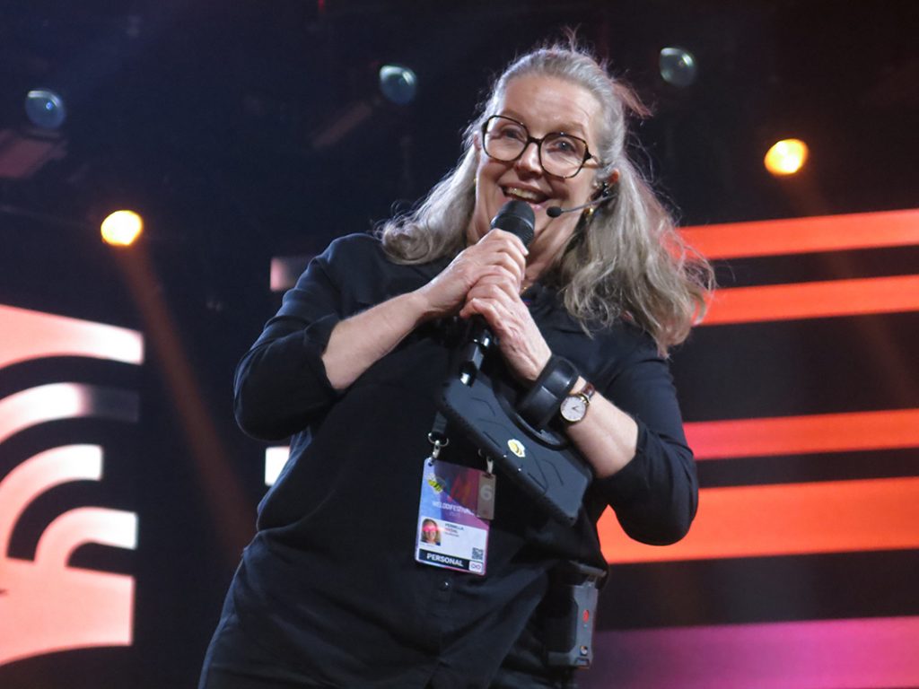 Studioman Pernilla Isedal hälsar alla välkomna och går igenom programmet.